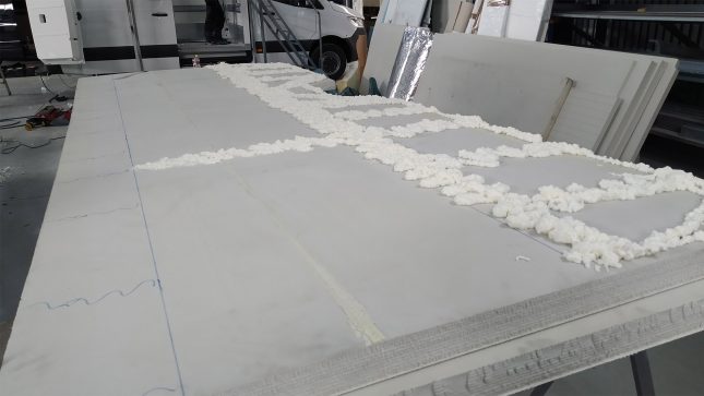 - Το πάτωμα διαθέτει επιπλέον στρώση από κόντρα πλακέ θαλάσσης για την υποστήριξη των φορτίων κι επικάλυψη πολυεστερικής ρητίνης για την σφράγιση και προστασία από την υγρασία. Η τελική επιφάνεια μπορεί να επιλεγεί λεία, αντιολισθητική ή με επένδυση αλουμινίου.